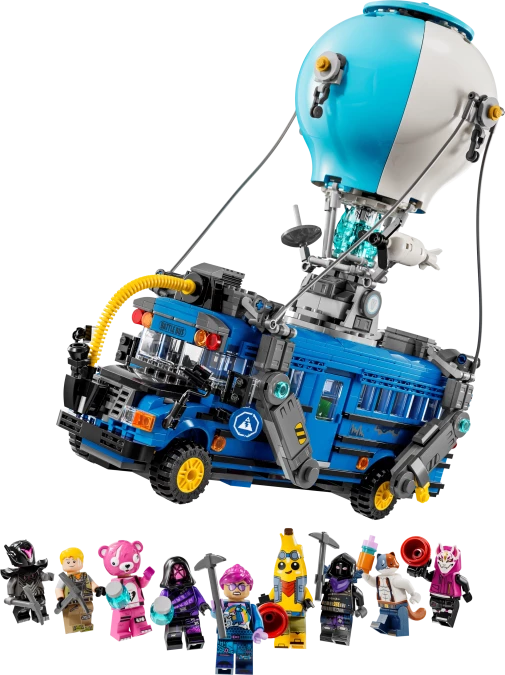 Op 01-10-2024 verscheen de eerste fysieke golf met vier sets: Durrr Burger (77070), Supply Llama (77071), Peely Bone (77072) en de iconische Battle Bus (77073). Deze kleurrijke modellen brachten direct de kenmerkende humor en actie van de game naar de woonkamer, compleet met minifiguren en in-game items.