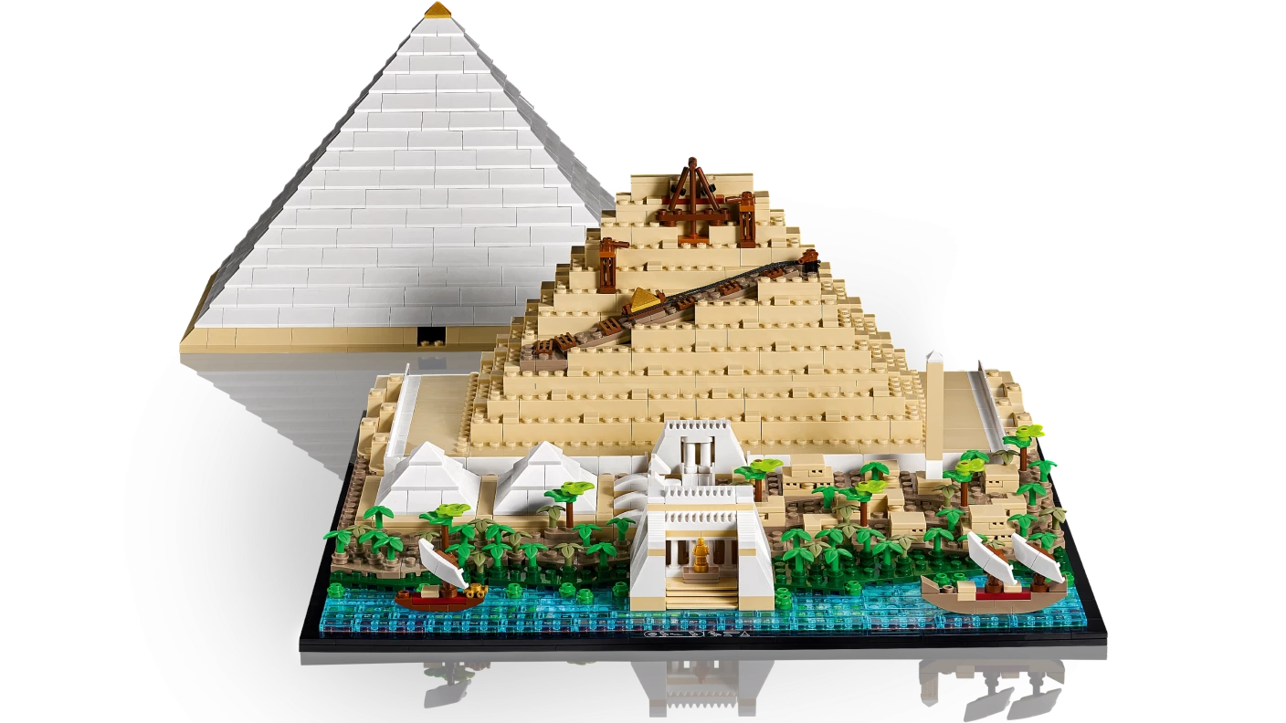 Tijdens het bouwen valt direct op hoeveel zorg LEGO heeft besteed aan de herkenbare vorm van de piramide. De schuine zijden zijn perfect nagebootst, terwijl subtiele kleuraccenten de iconische kalkstenen afwerking suggereren. Je kunt zelfs een deel van de buitenwand verwijderen om een glimp van het binnenwerk op te vangen, wat een boeiende inkijk geeft in de wijze waarop de echte piramide ooit zou zijn opgebouwd.
